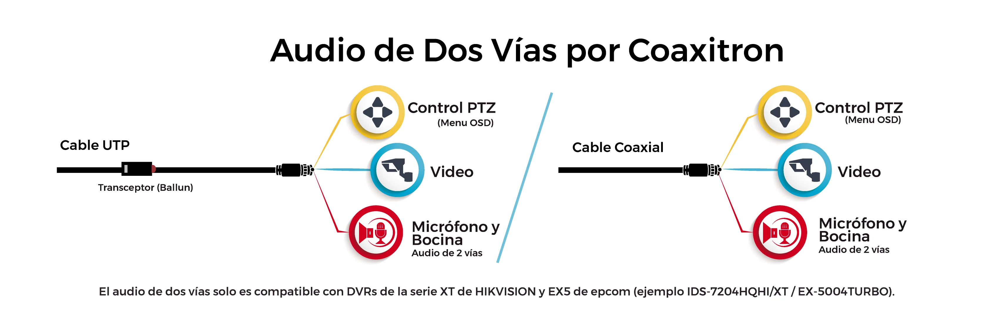 • Nota: El audio de dos vías por Coaxitron se envía únicamente por tecnología TVI.
