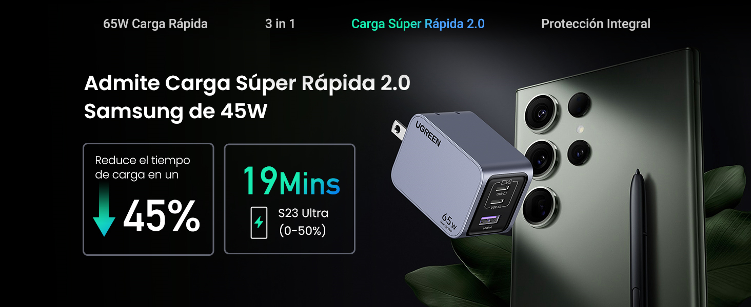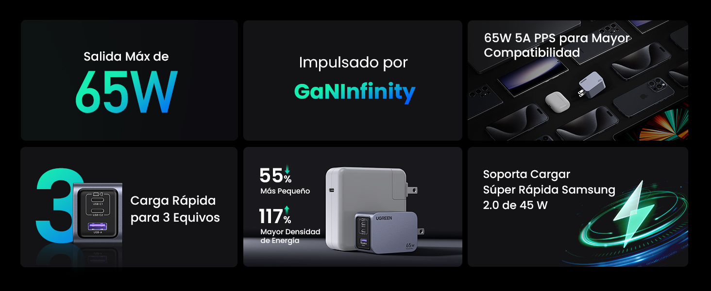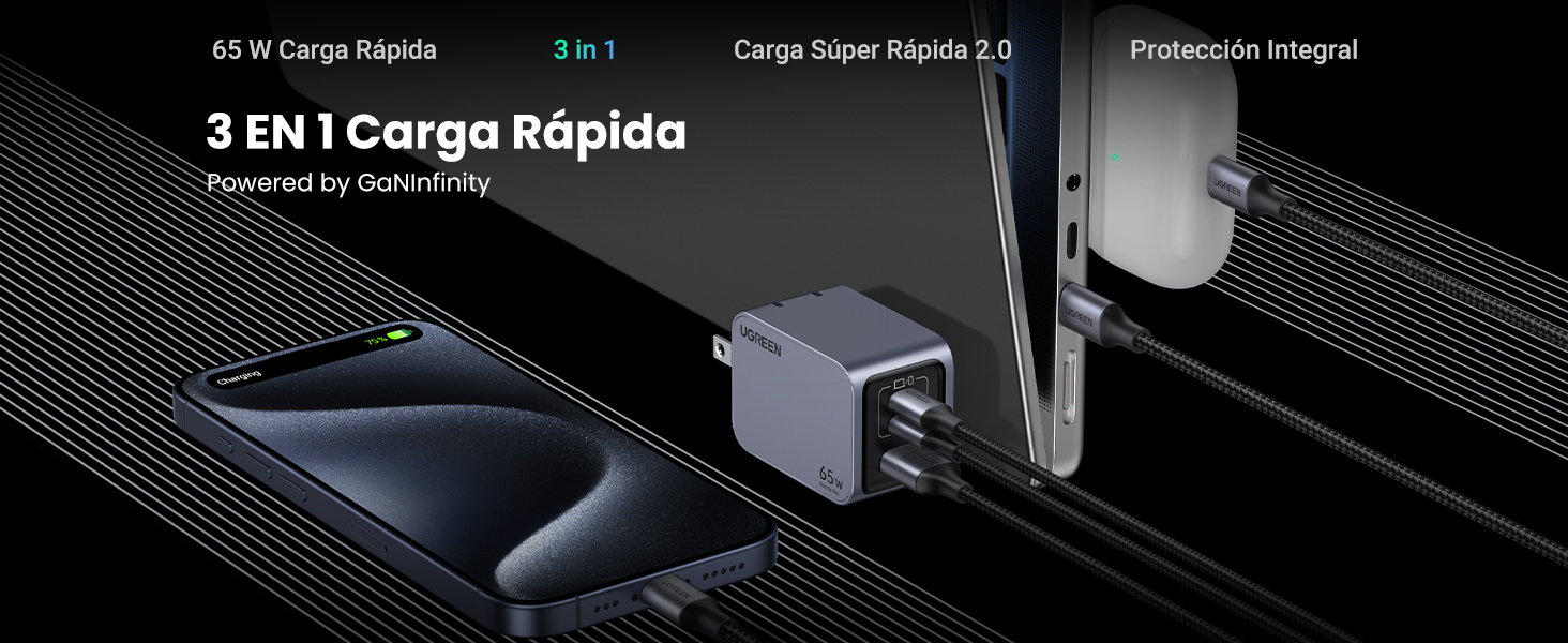 - Una nueva generación de tecnología GaN ofrece una experiencia de carga más rápida y potente, además mayor eficiencia con menos generación de calor en un diseño pequeño y liviano.