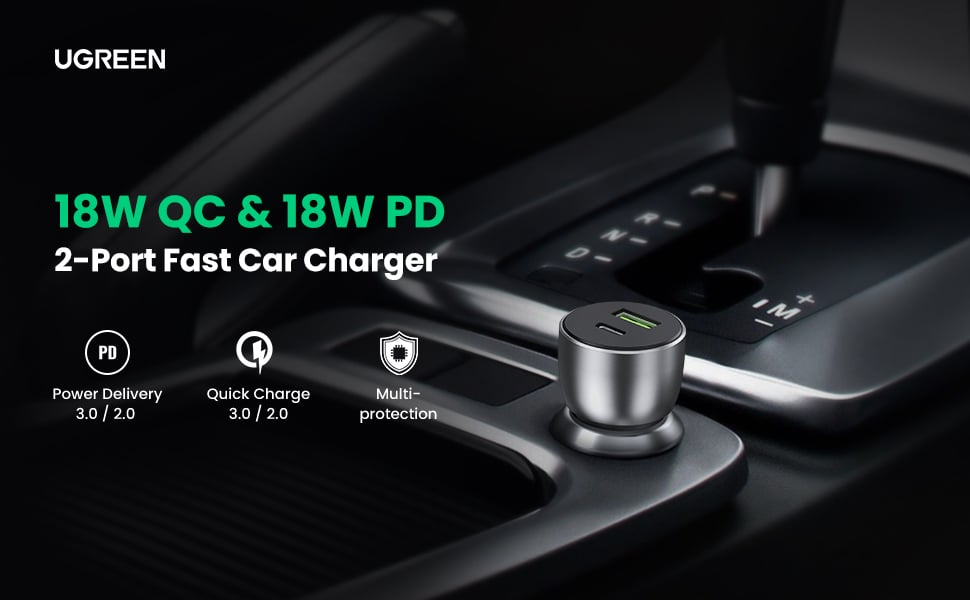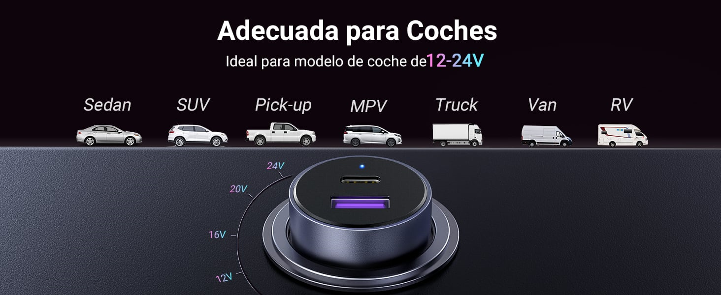 Cargador de Auto 52.5W | Puerto USB-A y USB-C | Carga Rápida | Compatible con Vehículos de 12 y 24 VCD | PD3.0 + QC3.0 | Chip Inteligente | Diseño Compacto Mayor Eficiencia Energética | Caja de Aluminio.