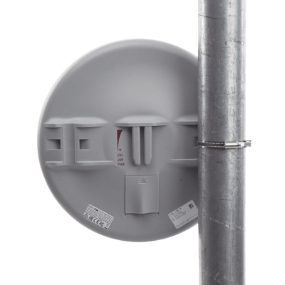 También está equipado con una antena de 21 dBi. Viene completo con una fuente de alimentación, un inyector Gigabit PoE y un anillo de montaje. El dispositivo también es compatible con nuestros sistemas de montaje SXT.