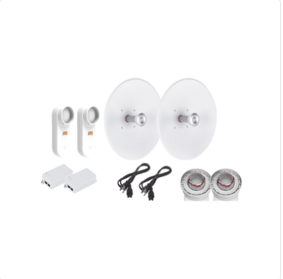 Enlace completo de 2 radios C5X con antenas UD-TP-27 (27 dBi), rango de frecuencia extendida (5.1 a 6.4 GHz), incluye inyector POE y cable de alimentación y adaptador para la antena