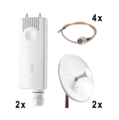 Enlace completo Punto a Punto para servicios TriplePlay, incluye: 2x FORCE300CSM, 2x NP1GEN2 (30 dBi), 4x Jumper