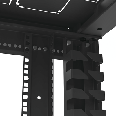 - Posibilidad de añadir 2 organizadores verticales adicionales a los incluidos, tomando en cuenta la profundidad de los equipos a instalar.