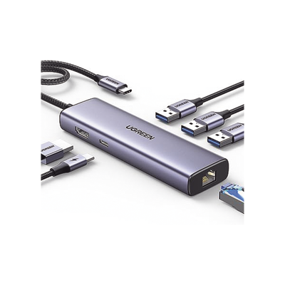 HUB USB-C (Docking Revodok) 6 en 1 | 3 Puertos USB-A 3.0 (5 Gbps) | USB-C PD 100W | HDMI 4K@30Hz | Entrada 1 RJ45 (Gigabit Ethernet) | Chip de Última Generación | Potente Disipación de Calor | Caja de Aluminio.