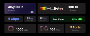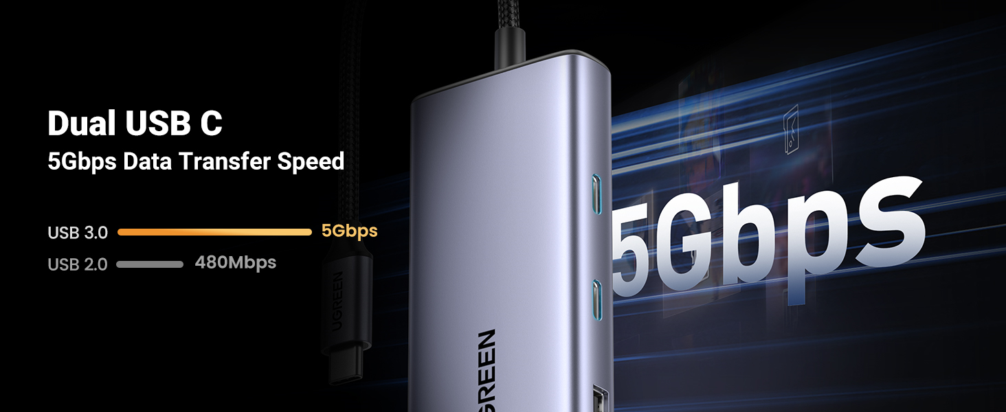 - Sus puertos USB proporcionan transferencia de archivos a velocidades de hasta 5 Gbps. Nunca pierdas ni un segundo y trabajar será más eficiente.