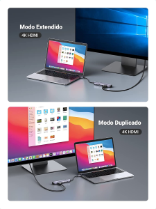 Este HUB USB C HDMI soporta la resolución hasta 4Kx2K@30HZ, mediante un cable HDMI puede conectar su PC o móvil compatible a un monitor, proyector o TV para disfrutar HD video en pantalla grande. Admite modo duplicado y modo extendido, así que es muy ideal para ver películas, hacer presentaciones o conferencias, dar clases, etc.