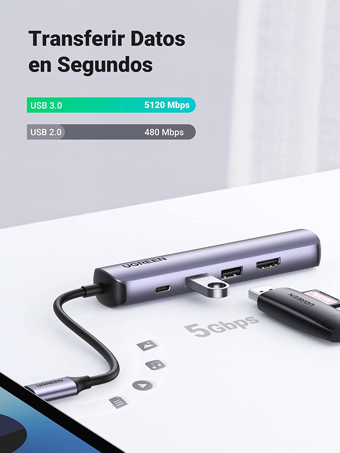 Fácilmente expande 2 puertos usb 3.0 para su macbook y disfrutas de la 5gbps velocidad de transferencia siendo aún más productiva. Es ideal para conectar cualquier periférico como memorias externas, teclados, ratones, discos duros, receptor bluetooth, cámaras y más. Todos los puertos se pueden utilizar al mismo tiempo.