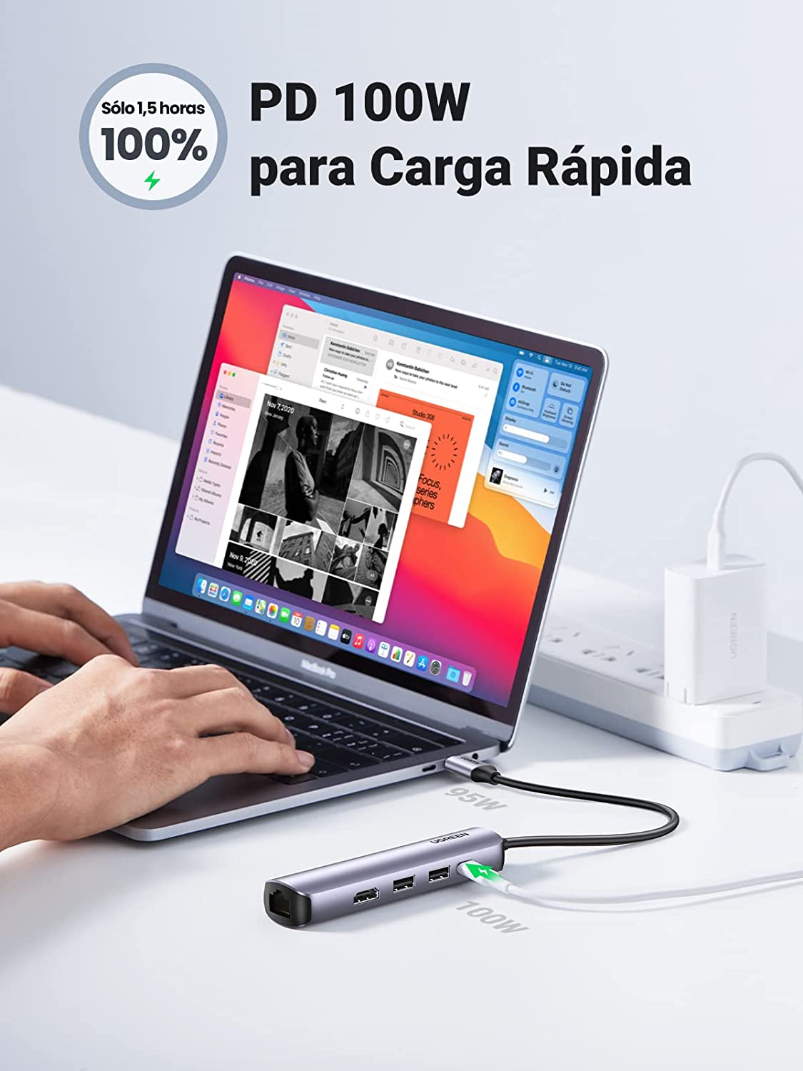 - Puerto de alimentación: Admite hasta 100 W de carga PD