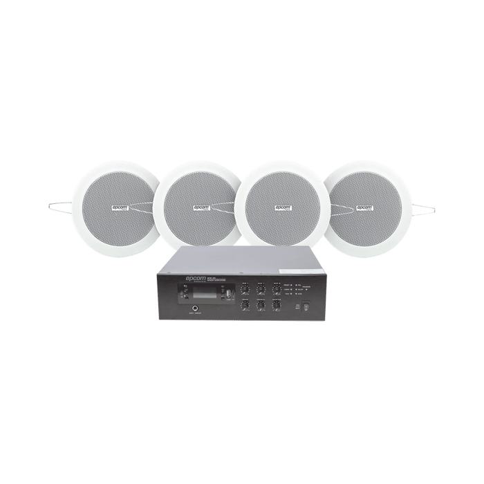 KIT de Amplificador de 120W para Escritorio | 4 Altavoces de Plafón de 4in | 3 – 6W | Sistema 70/100V