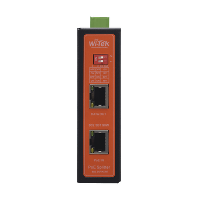 Splitter PoE IN hasta 90 W / Salida DC 12v/16V/24v o 48V / Carcasa metálica / Industrial soporte para riel DIN / Aplicaciones CCTV