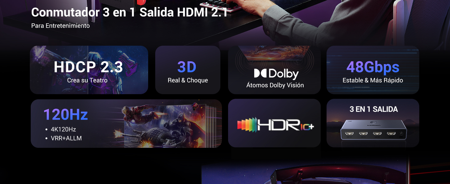 - Este interruptor HDMI 4k 120Hz no puede cambiar automáticamente, SOLO admite el cambio manual.