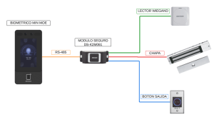 Instalaciones seguras con módulo esclavo En una instalación de control de acceso convencional con dispositivos autónomos es recomendado añadir un sistema que permita mantener el control de la puerta desde el interior del recinto aumentando significativamente la seguridad de nuestra instalación.